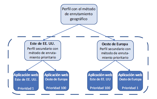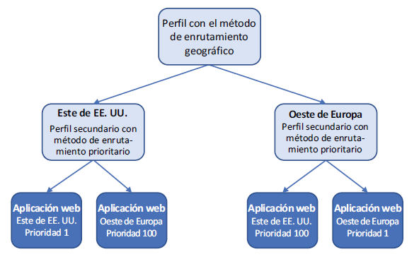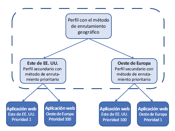 Cuando utiliza el enrutamiento geográfico, tiene un poco más de control sobre los puntos de conexión que utilizan los clientes. Puede haber razones reglamentarias que exigen que los clientes en una región determinada siempre utilicen puntos de conexión en la misma región. Los ejercicios usan puntos de conexión geográficos para mostrar un ejemplo más real, porque hay un truco para el enrutamiento geográfico: debe especificar un perfil secundario, no un punto de conexión directamente.