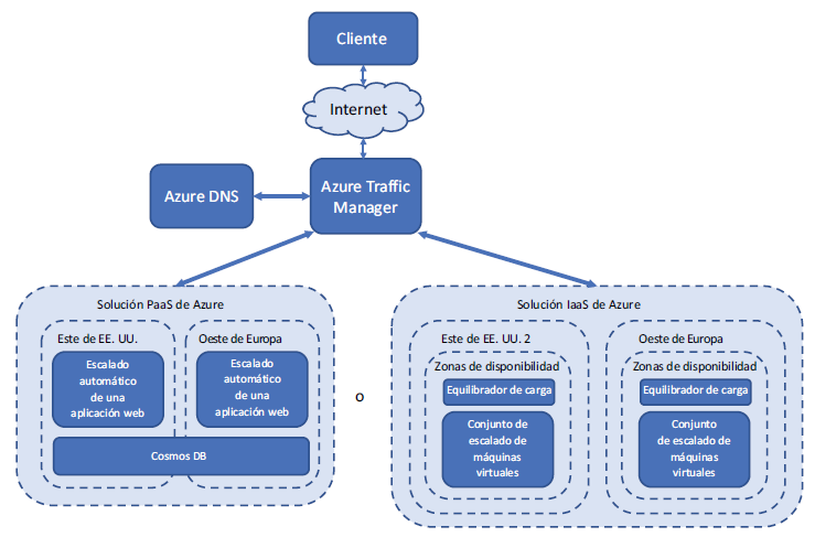 – Una aplicación web en Este de EE. UU. y otra en Oeste de Europa.