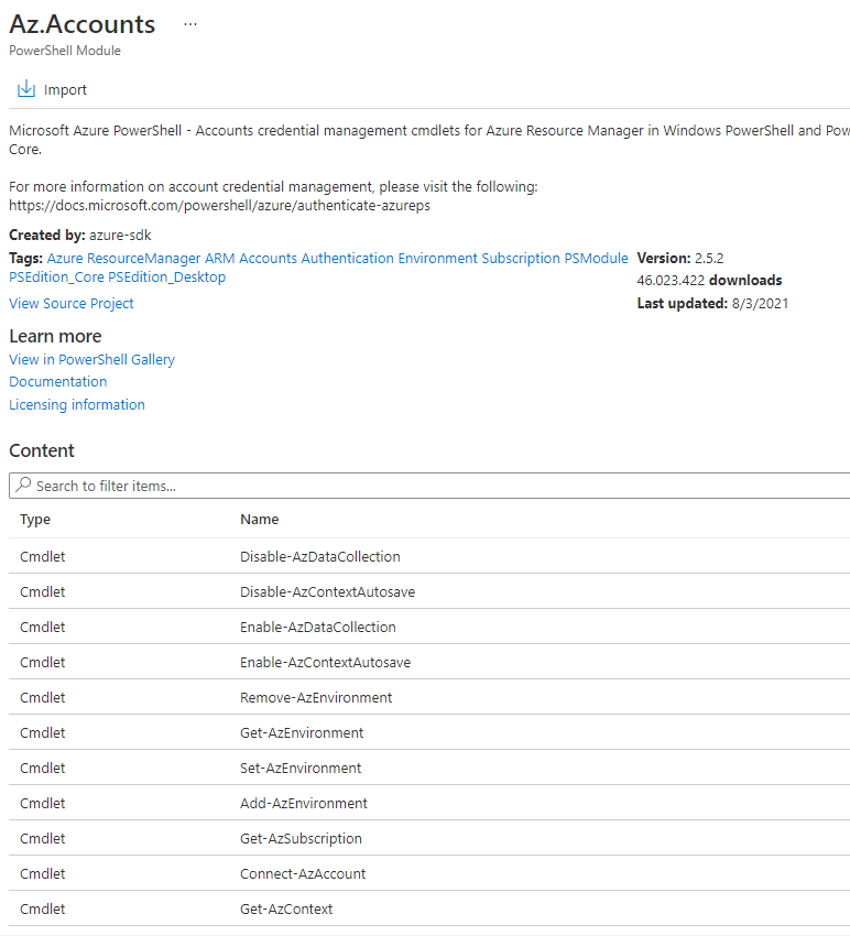 Le damos a la opción «Import» y este modulo se agrega como dije unos pasos arriba a tu entorno, a veces suele tardar un par de minutos entre 2 a 5 minutos en cargar el modulo de forma correcta, por lo que si van directo a probar el runbooks sin esperar por lo menos unos 5 minutos o mas, lo mas seguro les volverá a dar error.