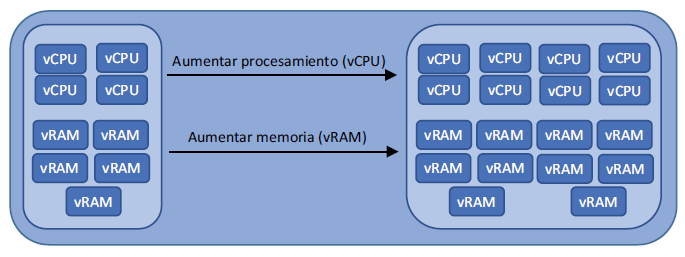 Hay un límite de cuánto puede escalar verticalmente una VM, es decir, darle más memoria y CPU. Empieza a tener problemas de rendimiento en otras partes de la unidad de proceso al exprimir al máximo el rendimiento de almacenamiento y el ancho de banda de la red. Y eso sin mencionar su billetera (o la billetera de su jefe) cuando ve la cuenta de esas inmensas VM. Como resumen del capítulo 9, la escalabilidad vertical se ilustra en la figura 10.3. Ahora imagine un clúster de esas VM con inmensas bases de datos, porque busca redundancia y resiliencia para su aplicación, ¿verdad?