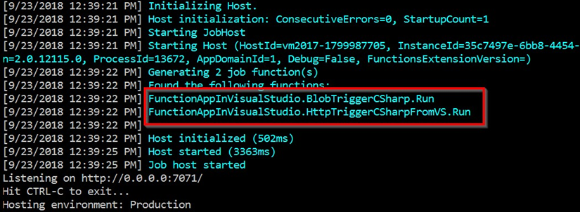 - El registro de ejecución de la función se verá en la consola del host de trabajo, como se muestra en la siguiente captura de pantalla: