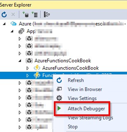 Depurar en vivo Azure Function de C#, que se hospeda en el entorno en el cloud de Microsoft Azure, utilizando Visual Studio