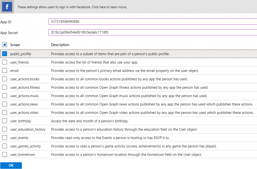 rápida de cómo crear un servicio de aplicaciones e integrar el inicio de sesión de Facebook.