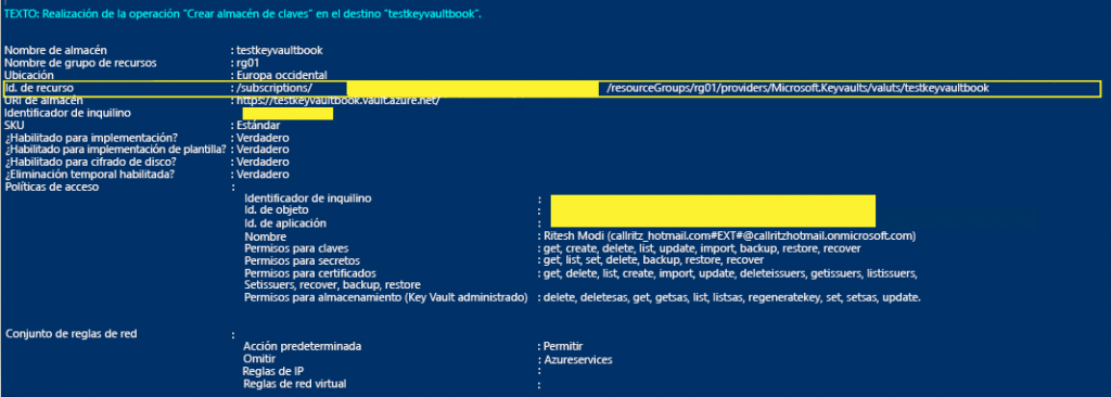 recursos recién creado. Estos pasos se pueden ejecutar mediante un único script de PowerShell