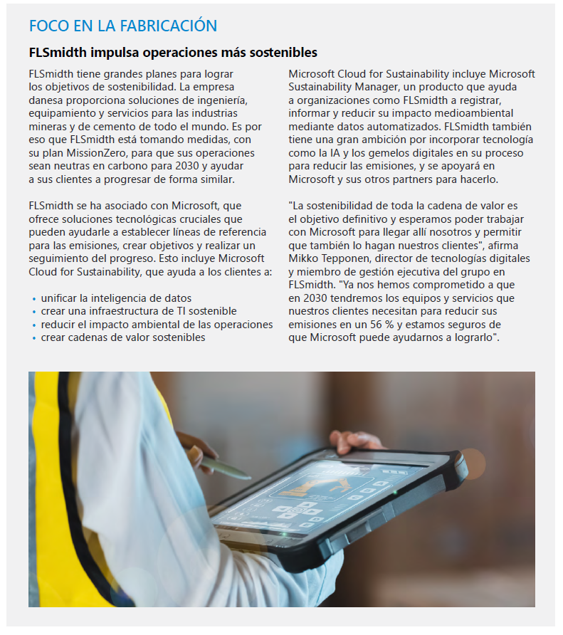 La misión de Microsoft es ayudar a todas las personas y organizaciones a lograr más cosas. Microsoft Cloud es una base digital de confianza, integrada y completa que ayuda a impulsar esta misión. Ofrece soluciones amplias y profundas para ayudar a las organizaciones a adaptarse a las perturbaciones, permitir a los empleados hacer su mejor trabajo, proteger los datos y las redes corporativas, y mantenerse al día con las cambiantes regulaciones y requisitos.